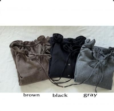 襟元のフリルは前部の一部だけキュッと絞れるデザインとなります。